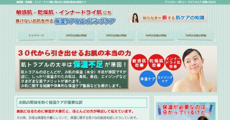 このサイトは、敏感肌・乾燥肌・インナードライに悩む女性に向けて、「今日からすぐに実践できる保湿ケアの選び方」をまとめたアフィリエイトサイトです。悩み別の導線設計やキーワード戦略などを、自分のロジックで組み立てた作品になり […]